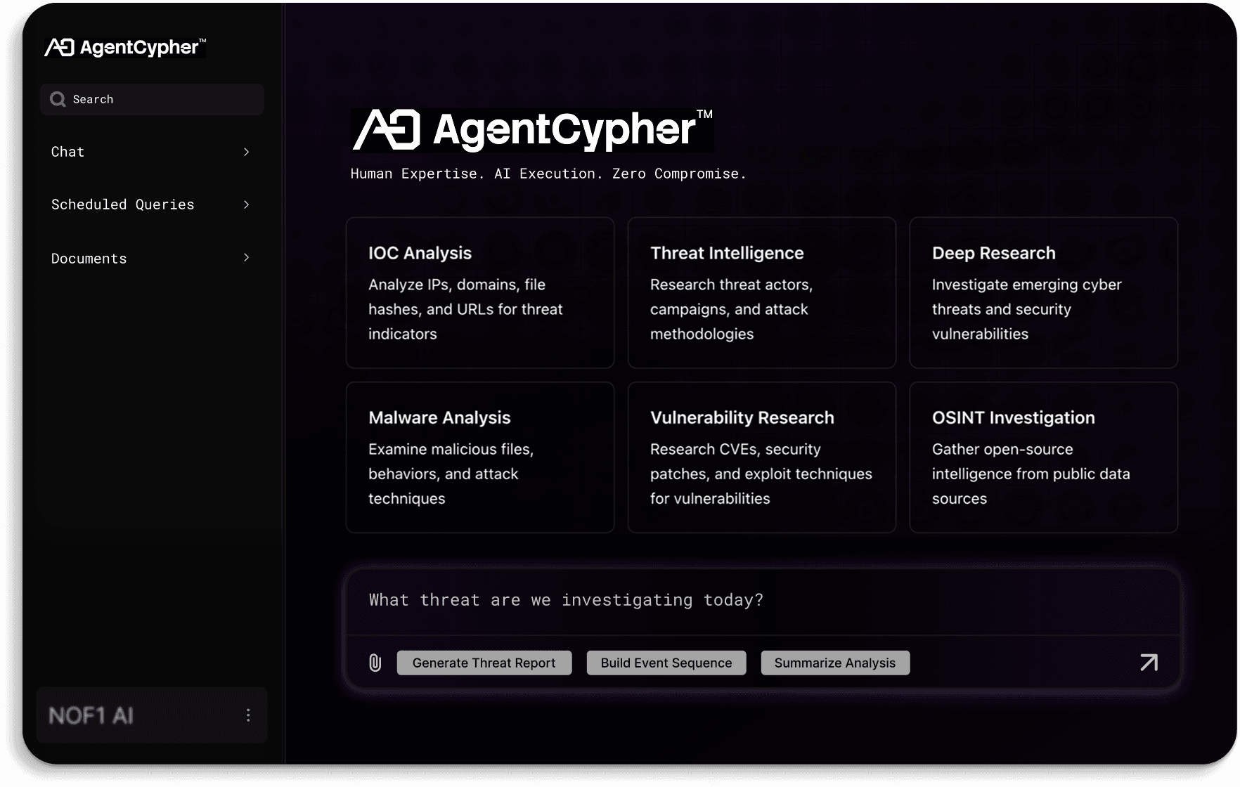 Investigations that took your team 5 days now take 5 minutes. AgentCypher searches 30+ threat intelligence sources and delivers comprehensive reports while you focus on response.
